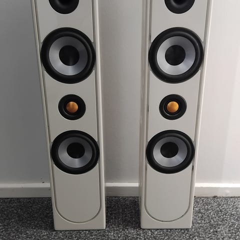 Højttaleren leverer en fyldig og velbalanceret lyd med god dybde. Den fremstår med almindelige brugsspor og ridser, men dette har ingen betydning for lydkvaliteten.