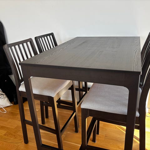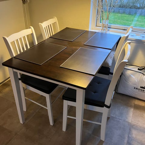 Extendable dining table from 120 to 180 cms. It is together with 4 matching chairs. More chairs can be provided upon need for free. Selling due to moving