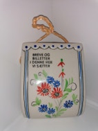 Keramik, Brev holder, Retro, Fin gammel brev holder i keramik. Den er håndmalet med de fineste blomster i sommerfarver. Flad på bagsiden, så den er lige til at hænge op på væggen. Dekorativ og hyggelig at have hængende. Den måler 13x10,5 cm. Og den er i perfekt stand.