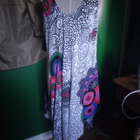 Bon´A Parte sommerbluse / tunika str. 44, perfekt i sommervarmen. Meget let og luftig tunika/kjole. Multifarvet. Bryst 52cm x2, 48cm ved overskæringen, længde 95cm. Næsten som ny. Vejer 105g.