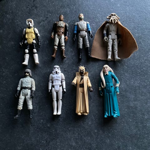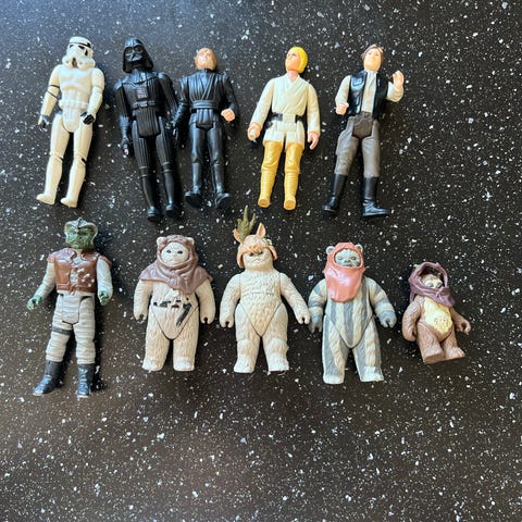 Stort retro star wars legetøjssamling. Mange figurer og massere af fly + maskiner. Da legetøjet er over 40 år gammel kan fejl og mangler forventes. Sælges kun samlet.