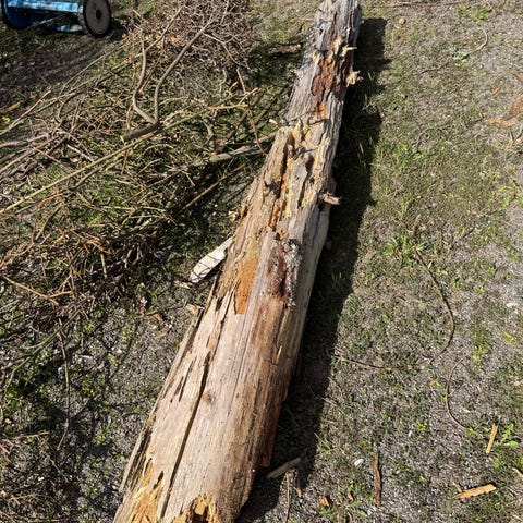 Stort stykke hult træstamme, som ses på billederne med målepind for højde. God til haveprojekt, dekoration eller som naturtræ til forskellige idéer.