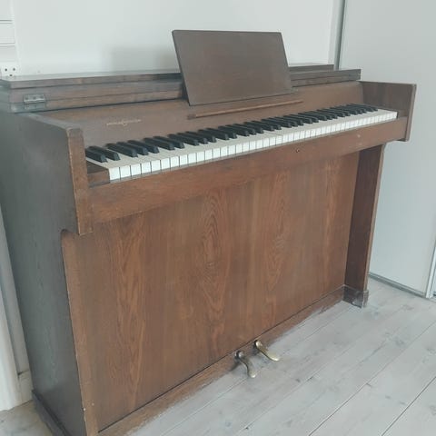 Fint lille Andreas Christensen Pianette. Med dæmper funktion. Alt fungerer stemt for tre år siden. Foræres. Ingen trappetrin. Reserveret til henrik