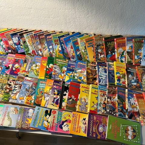 Stor blandet samling Anders And bøger og tegneseriehæfter sælges samlet.