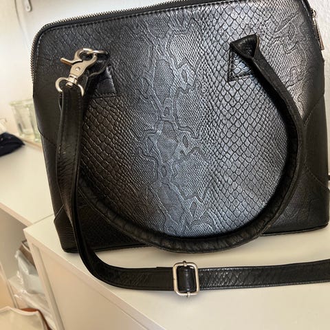 Sort lædertaske fra & Other Stories med lynlås foroven. Har ekstra lynlåslomme foran og rummeligt hovedrum med mørkt foer indeni.