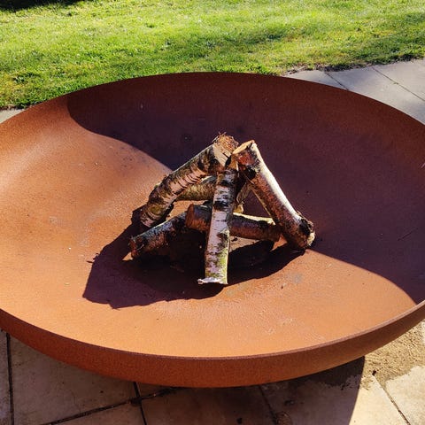Stor firkantet i metal med fire ben, god plads til kul og mad. Har høj kant hele vejen rundt og åben bund, så den er nem at fyre op i. Måler 80x50x20