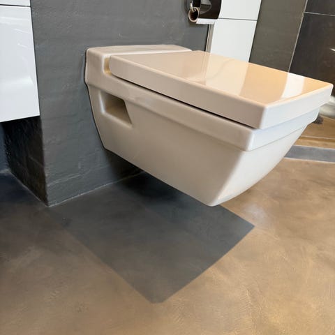 Hvidt væghængt toilet med toiletsæde sælges. Har et enkelt, rundt design og skjulte beslag ved sædet, soft-close sæde