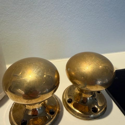 Antikke gamle AJ111 massive messing håndtag. Jeg har håndpoleret håndtagene op. De er super smukke. 1 sæt 1200kr alle 3 sæt for 3000kr. Toilet besætning 200 kr