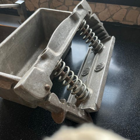Rullepølse presse i metal i særdeles god stand. Ny pris ca. 2500 kr.