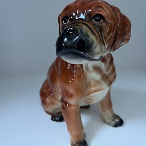 vintage Staffordshire hund med lille skade på næse.