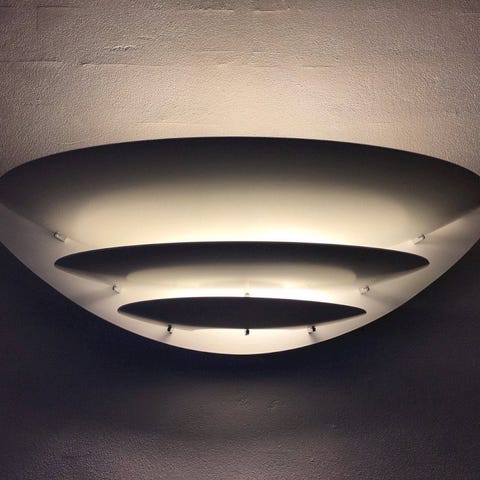 Det karakteriske for lampen er den kegleformede skærm og de 3 afblændingsringe som medgiver et blødt oplys.
