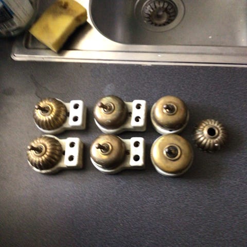 Vintage messing lyskontakt og stikkontakt fra gammel herskabslejlighed .
