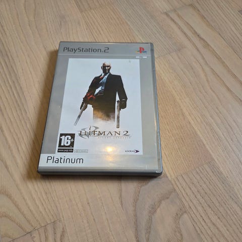 PlayStation 2 spillet Manhunt i Platinum-udgave med originalt cover. Med manual og trykt inderside med Valiant Video Enterprises grafik.