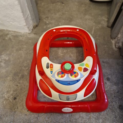 Fin gåstol til baby købt i ØnskeBørn, blå og hvid med polstret sæde. Har lille aktivitetsbord foran med musik og knapper, drejehjul og ABC-figurer. Næsten ikke brugt, da barnebarnet flyttede en måned efter købet. Nyprisen optil 999 kr.