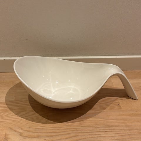 Muuto Crushed Bowl i hvid porcelæn med facetteret udtryk. Fin som frugtskål eller til servering på bordet.