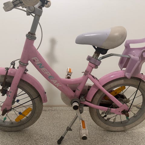 PIGECYKEL.Trek børnecykel med 12 tommer hjul i lyserød farve. Passer til pige fra 3-5 år. Cyklen er udstyret med et barnesæde / dukke bagpå. Giv et byd. Send SMS 53781221