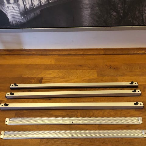 Alu rist. Generelt anvendelig. Mål 1,5 x 10 x 50 cm.