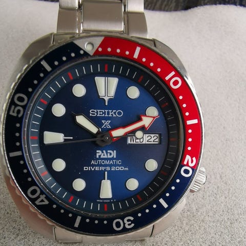 Dette dykker fra Seiko kommer i en flot farve kombination. Udover meget lidt overfladisk hairlines pp lænke så er standen næsten som nyt. Et utrolig flot model og rigtig flot farve kombination som spiller rigtig godt. Et ur der skal opleves!