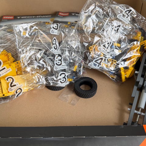 8872 Forklifter Transporter, 8022 Starter Set, 8810 Café Racer, 8816 Off-Road Scrambler og 1972 Go-Cart. Kommer med brugsanvisninger og ekstra dele i en kasse. Der medfølger også motorsæt som kører på batterier. Sælges samlet.