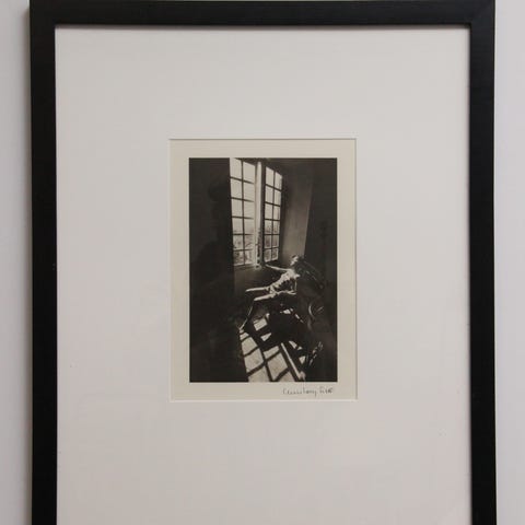 Stemningsfuldt vintage kunsttryk med motiv af en liggende figur på en sofa, udført i dæmpede jordfarver og med et roligt, næsten poetisk udtryk. Kompositionen er enkel og grafisk, hvilket giver værket en moderne og tidløs karakter trods dets alder.