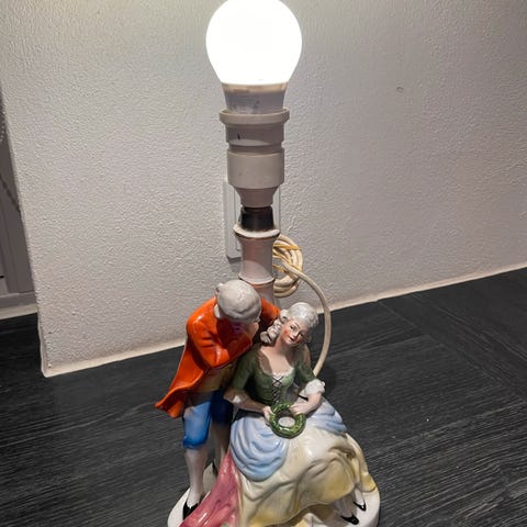 Den fremstår I en virkelig god stand uden kant skår, revner eller lignende. Med den gamle originale fatning med afbryder som er fuldt funktions dygtig