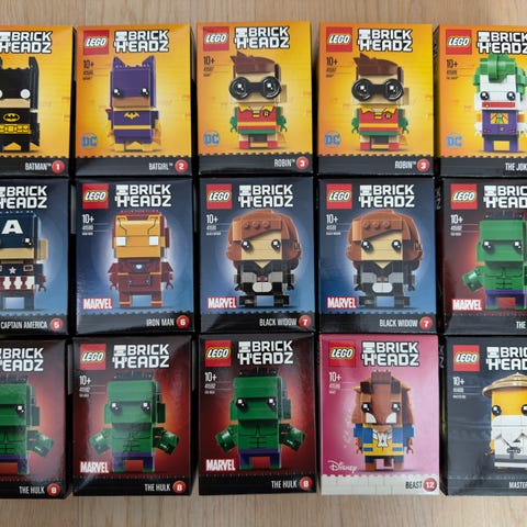 Samling af forskellige LEGO BrickHeadz æsker, bl.a. figurer fra film og spil. Sælges samlet som på billedet med flere forskellige motiver.2200 for alle æskerne