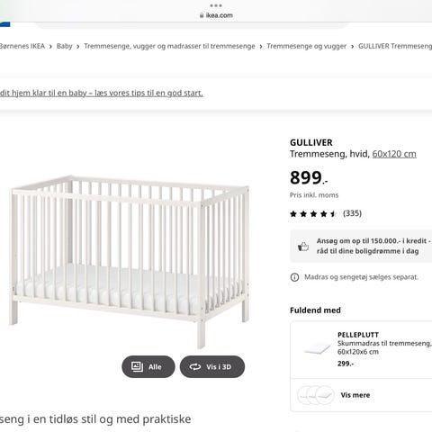 IKEA GULLIVER tremmeseng samt VYSSA madras og VIKARE sengehest.