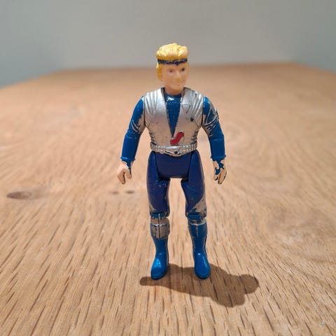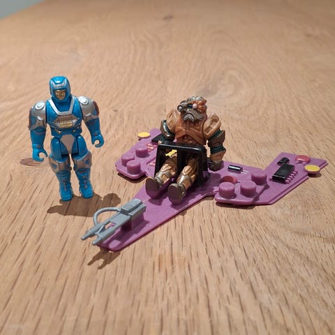 Protoceratops og figuren Mercury fra Dino Riders. Udgivet af Tyco i 1987. Dinosauren kommer med komplet Armor, men mangler spidsen på shooter. Den originale figur til dinosauren Kanon medfølger ikke, men i stedet medfølger figuren Mercury. Originalt stige tilbehør medfølger. Alt iflot stand. Se også mine andre annoncer for andet retro og vintage legetøj.