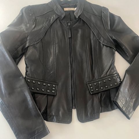 Læderjakke, str. 38, Dranella, Cognac, Lammeskind, Ubrugt, Dranella str. 38 / medium den mest utroligt lækre blød lammeskindsjakke med mange detaljer og flæse over lænden i farven cognac.