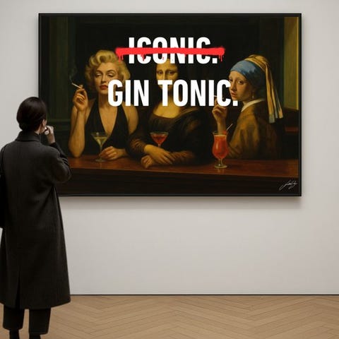Et ikonisk Mona Lisa bliver vandaliseret af nutidens popkultur: iført Stormtrooper-helmdæksel og smeltet sammen med en baggrund bestående af graffiti, spray og urban oprør.