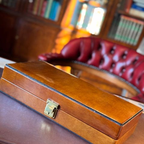 smukt dekorativt læderrejse- eller lægekuffert i god stand