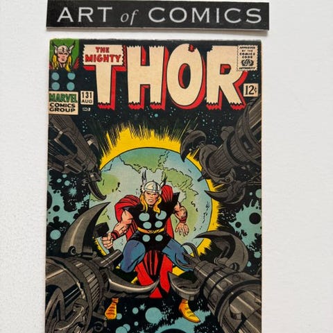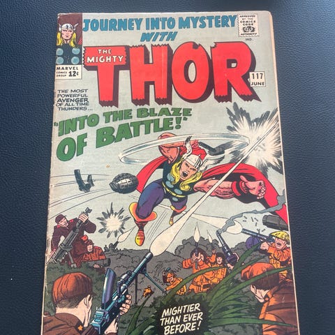 Første udgave af Journey Into Mystery nr. 119, Marvel Comics tegneserie af Jack Kirby og Stan Lee fra 1965, hæftet binding, tilstand Very Fine. Klik på den blå "gå til varen" knap, for at købe eller byde på denne vare. Den samlede pris vil blive vist inden du afgiver dit bud.