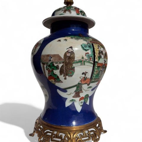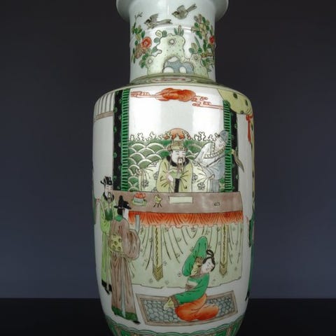 Meget flot stor kinesisk porcelænsdeksevasen med figurer og dekor fra det 19. århundrede.