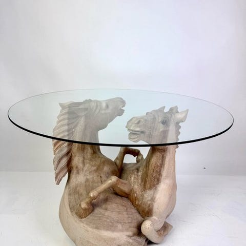 Denne runde sofabord med messingben er et fremragende eksempel på deres arbejde i cane og blev restaureret af Bielecky-fabrikken—som stadig driver i New York under familiens fjerde generation—før den blev erhvervet af Casa Branca.