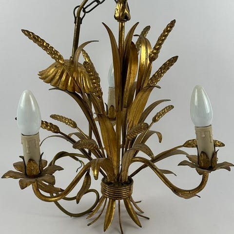 Antik loftlampe i forgyldt bronze, fremstillet i Italien (Veneto), 35 cm bred, 35 cm høj, 35 cm dyb, med 3 fatninger, stil Antik, ca. 1940–1950, i god brugt stand med små aldersmærker, i funktion. Klik på den blå "gå til varen" knap, for at købe eller byde på denne vare. Den samlede pris vil blive vist inden du afgiver dit bud.