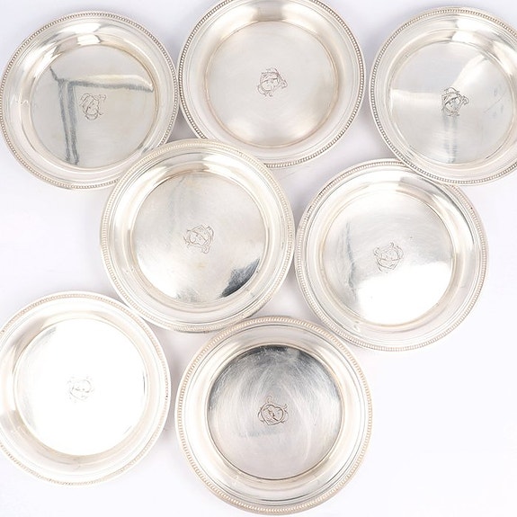 Finpudset i balusterform, med stærkt udadvendt topkant, halsen forsynet med reliefhåndtag formet som blå dyrehoveder med jernrøde ringe i munden. Fremragende malet på ydersiden i levende emaljer med en sammenhængende scen, der viser hoffunktionærer, lærde, immortaler, krigere, damer og barn i haven med banantræer og andre træer, klipper, blomster, skyer. Bånd af jernrød og grøn diaper-mønster med peoner over foden. Ligner brede bånd, men i lyserød, turkis og gul på halsen og under topkanten. Hals med immortaler blandt skyer, klipper og bjerge. Gamle papirlabels, et med cypher 5 på