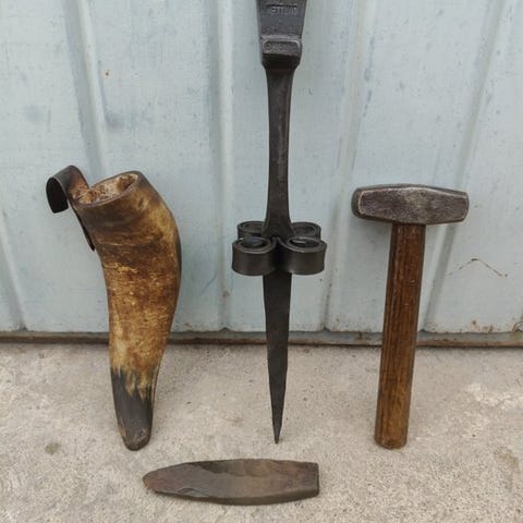 Håndtag laminert i sølv, den modsatte ende ender i horn.