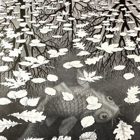 Skabt omkring 1950 er Architecture des arbres en stor blæk-komposition, hvor