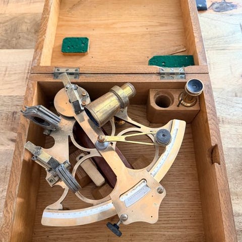 To vintage messing-stereooptikker med hver to brændviddeforlængelser