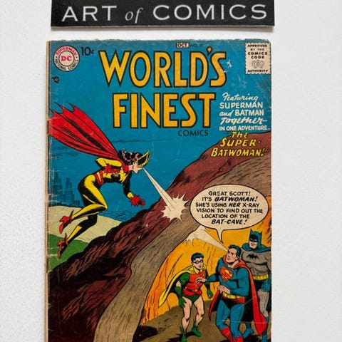 Superman #142, første udgave, hæftede tegneserieudgivelser fra DC Comics i 1960, i meget god stand, med kunst af Curt Swan, Stan Kaye, Wayne Boring, Kurt Schaffenberger, Jerry Siegel og Otto Binder; Batman, Supergirl og Krypto optræder. Klik på den blå "gå til varen" knap, for at købe eller byde på denne vare. Den samlede pris vil blive vist inden du afgiver dit bud.