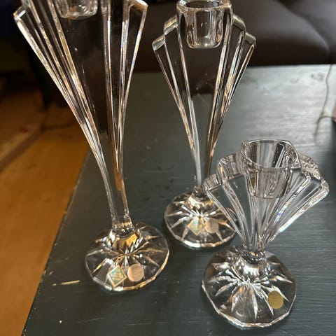 Val Saint Lambert Cornucopia Vase / Horn of Plenty, krystalvase i Art Deco stil, gennemsigtig krystal, højde 23,5 cm, bredde 30 cm, dybde 16,5 cm, vægt 2,2 kg, fremstillet i Belgien i 1970, i god stand, et fod er restaureret. Klik på den blå "gå til varen" knap, for at købe eller byde på denne vare. Den samlede pris vil blive vist inden du afgiver dit bud.