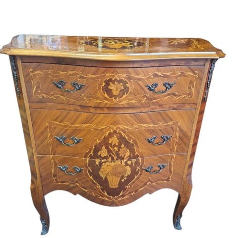 Det på billedet viste møbel er en lille kommode eller skænk i fransk landstil.