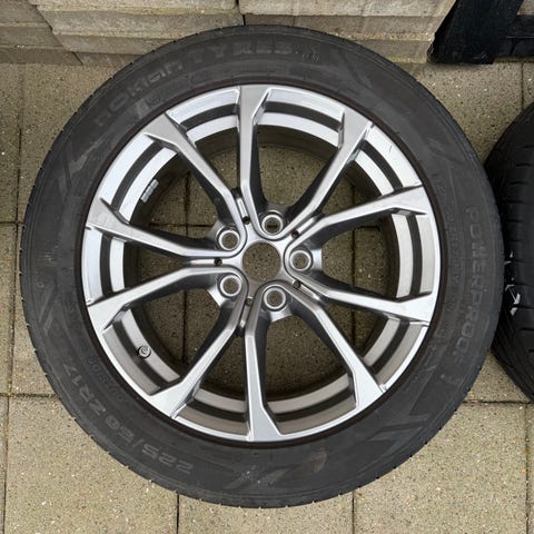 Rigtig flotte originalfælge på sommerdæk. Der er 5-6mm mønster på dækkene.