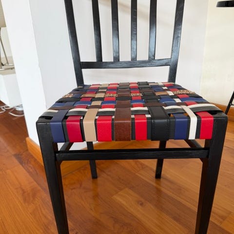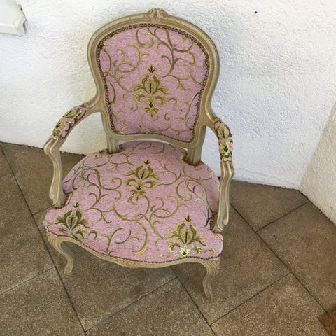 Par af stole med træramme og aftageligt tekstilbetræk til sædet.