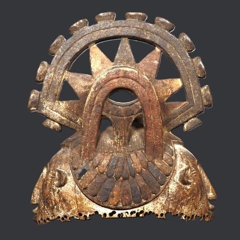 Et antikt kinesisk silke-stikpanel i rund form fra Qing-dynastiet (ca. 1800–1850), der forestiller femkløede drager, der står ansigt til ansigt mellem stiliserede skyer og lykkebilleder, udført i silke med broderiguldtråd på en mørk baggrund, 33 cm x 33 cm, i rimelig stand. Klik på den blå "gå til varen" knap, for at købe eller byde på denne vare. Den samlede pris vil blive vist inden du afgiver dit bud.