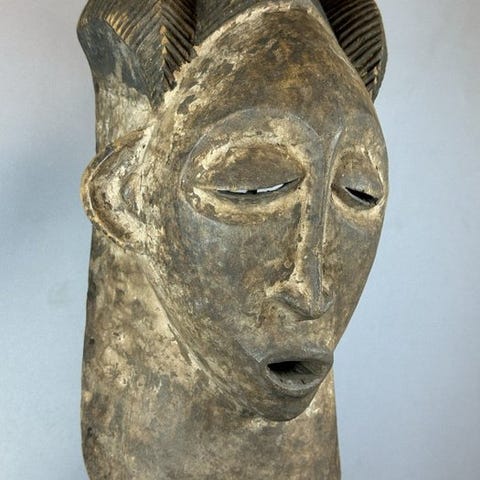 Mægtig Kumu-maske fra Ituri-regnskoven i Den Demokratiske Republik Congo.