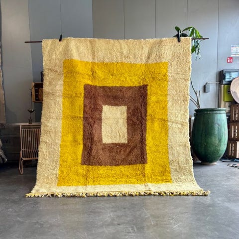 Bring tidløs elegance ind i dit hjem med dette marokkanske Mrirt uld tæppe, håndlavet af dygtige berberiske håndværkere fra Midtatlasbjergene. Dette luksuriøse stykke har en høj-pilegeometrisk tekstur i en blød cremefarvet nuance, der skaber en skulpturel ternet effekt med tonalt dybde.