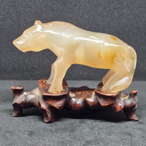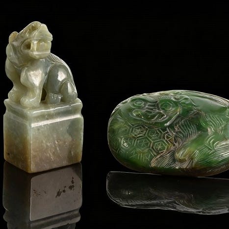 Russet jade foo dog, jade-skulptur fra Qing-dynastiet i Kina, mål 8 cm bred, 4 cm høj og 4 cm dyb, provenance Veilinghuis, original/ægte autenticitet. Klik på den blå "gå til varen" knap, for at købe eller byde på denne vare. Den samlede pris vil blive vist inden du afgiver dit bud.