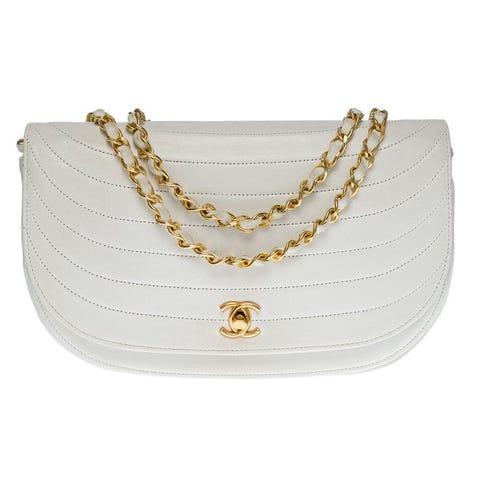 Pragtfuld Chanel Gabrielle skuldertaske i mellemstor størrelse, i matelasseret sølvfarvet læder, pynt i guldfarvet og sølvfarvet metal, dobbelt kæde i guldfarvet og sølvfarvet metal vævet med sølvfarvet læder, der giver mulighed for skulder- eller crossbody-bæring