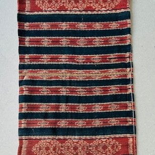Vævet består af 6 lodrette bånd på cirka 27 cm bredde. Det blev vævet på et smalt væveværktøj. (se foto).